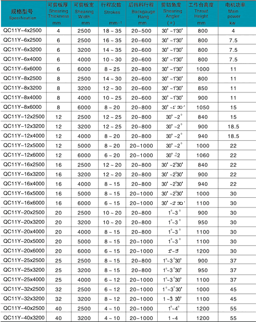 性能與特點: 全鋼焊接結(jié)構(gòu),綜合處理(振動時效、熱處理)消除內(nèi)應(yīng)力,有很好的剛性與穩(wěn)定性。 采用先進的液壓系統(tǒng),可靠性好。 采用精密滑動導軌,消除導軌間隙,剪切質(zhì)量高。 電動后擋料,手動微調(diào),數(shù)字顯示。 刀片間隙有手柄調(diào)整,刻度值顯示,迅速、準確、方便。 矩形刀片,四個刃口均可使用,使用壽命長。剪切角可調(diào),減少板料扭曲變形。 上刀架采用內(nèi)傾結(jié)構(gòu),便于落料,并能提高工作精度。 具有分段剪切功能;具有燈光照明裝置功能。 后托料裝置(可另選擇配置)。 技術(shù)參數(shù): ![]() 添加時間:2010-08-20 瀏覽次數(shù):234 |